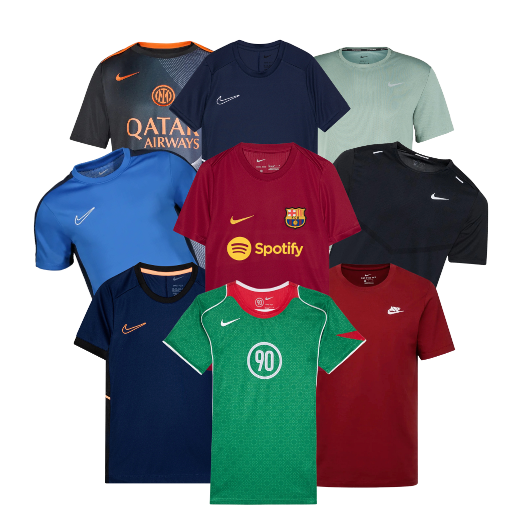 La nostra Nike Sport T-Shirt Box include una selezione di t-shirt tecniche e sportive originali Nike, ideali per allenamento, running, palestra o uso quotidiano. All’interno potrai trovare modelli Dri-FIT, Pro Training, Running, Performance e Lifestyle, tutti realizzati con tessuti traspiranti e leggeri per il massimo comfort e mobilità.